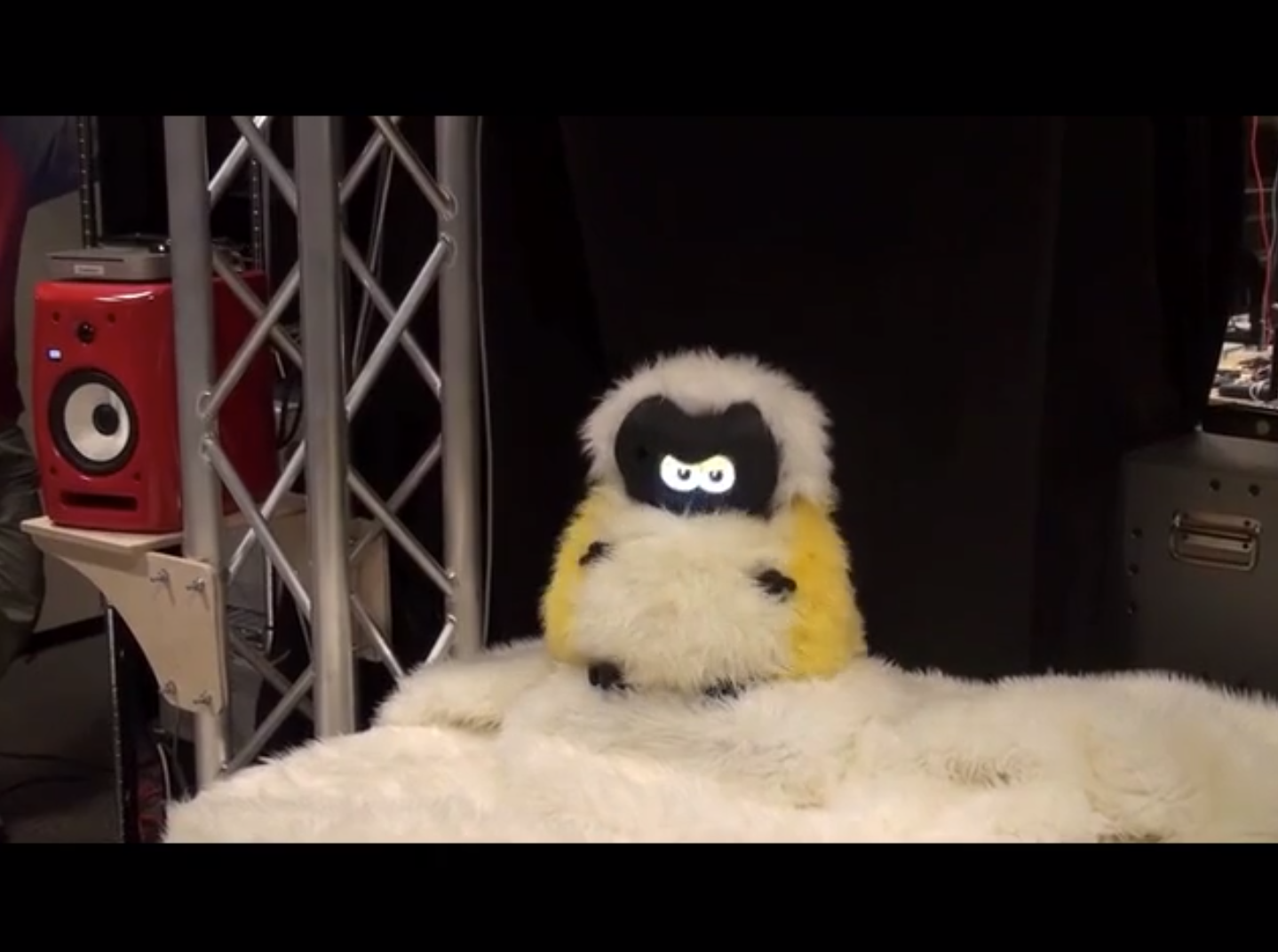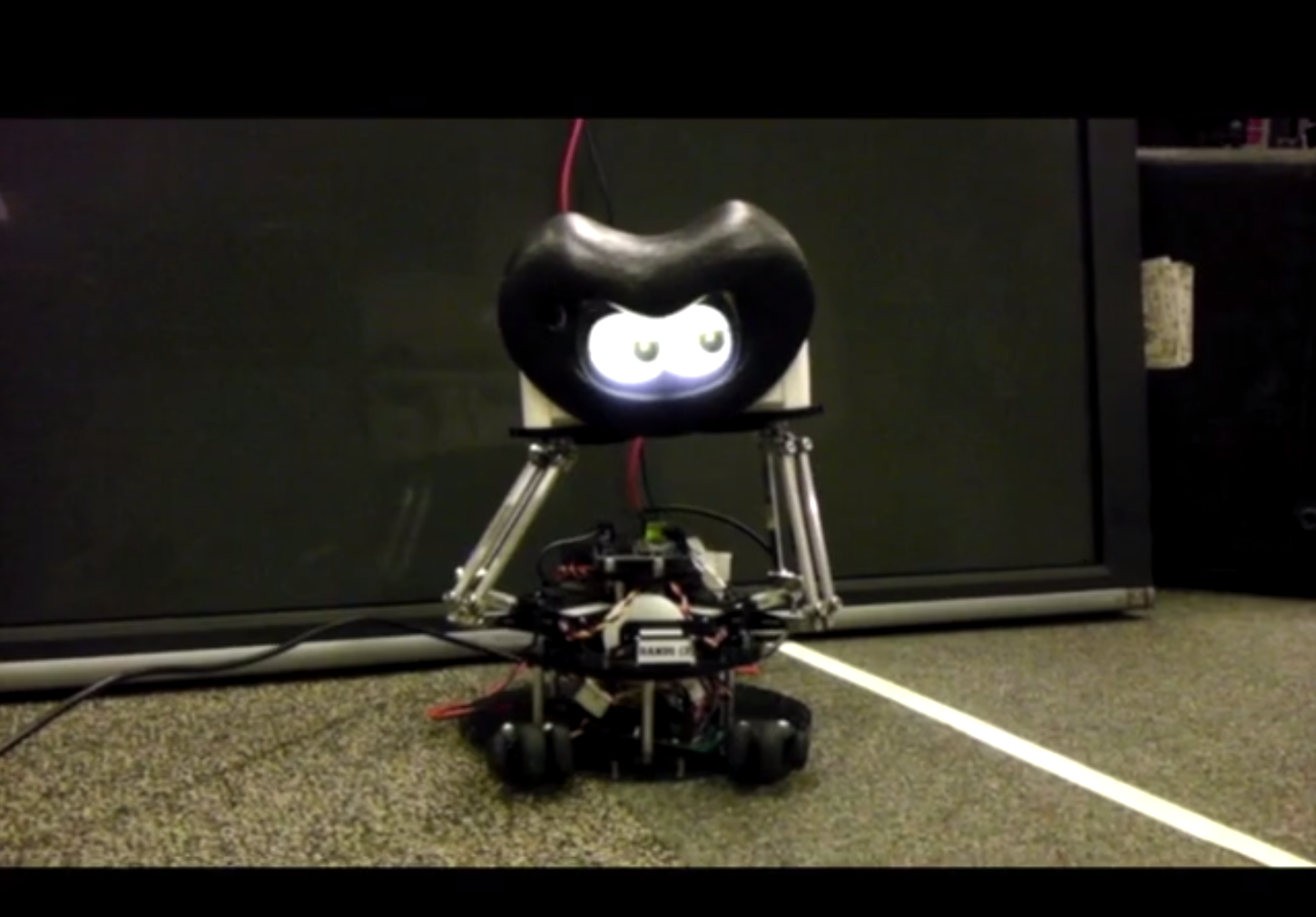 The furry exterior also has fabric capacitive electrodes sewn in, allowing for detection of touch and pre-touch in six distinct locations on the robot's body. The robot wirelessly receives information about any people in the environment from a Microsoft Kinect hidden in the environment, and Nimbus was programmed to want to mimic any people in front of it. The video below shows the robot's motion, and illustrates the robot moving along with humans and expressing elation when the human's motion coincides with the robot's.